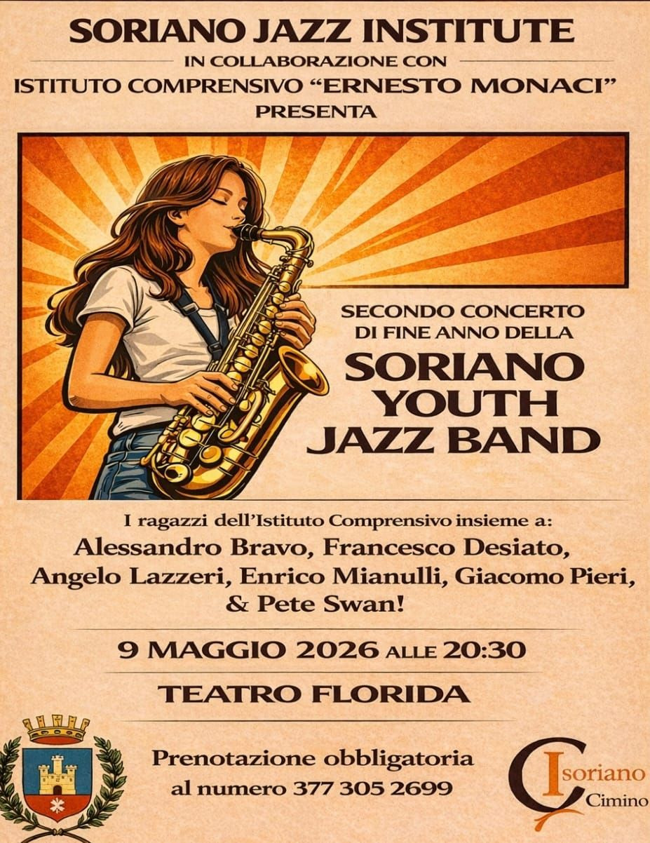 Sabato 9 maggio 2026 alle ore 20:30, il Teatro Florida di Soriano nel Cimino ospiterà il secondo concerto di fine anno della Soriano Youth Jazz Band.